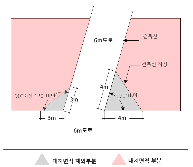 8m 미만인 도로의 모퉁이에 있는 대지의 면적 산정